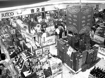 廣州吉之島內火爆的月餅展銷將持續一個月。 (于濱攝)