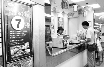 【本報訊】(記者 陸智豪)本港快餐業可能再掀減價戰。連鎖快餐店美心集團昨日在報章刊登全版廣告,宣布從昨天起逢星期日至星期四,晚上八時半後全線提供七折優惠,預計此項優惠將持續數個星期。有飲食業人士指出,快餐業的減價戰其實早在今年四月份已經開始,減價戰長此下去可能出現「汰弱留強」的情況,令一些小型的快餐店支持不住而要結業。