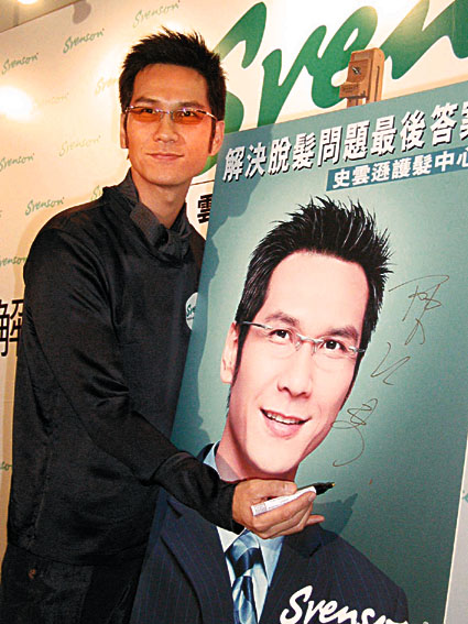 【本報訊】(記者 梁靜儀)陳啟泰最近成為某護髮產品代言人,昨日阿Ken出席該產品記者會,會上他並拿出脫髮後的相片跟現在作比較。雖然阿Ken聲稱用了該產品後脫髮情況已有改善,但以記者所見,使用前後的分別也不是相差很多。