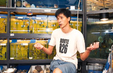 說到自己養魚的歷史,陳明立刻拋開靦腆,侃侃而談。回想往時,不勝唏噓:「兒童時代就喜歡養魚,那時候水族業發展得很好。夜晚出街,望上樓去,兩三戶人家便有一戶養魚,種類不一,但十分風行。但是,現在不同了,一百戶人家堶情A大概也就一戶養魚吧。」