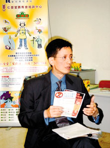 黃國倫介紹勞工處打擊黑工的新宣傳單張 。