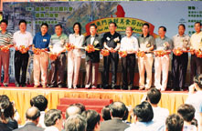 曾蔭權、王鳳超、黎高穎怡、陳鑑林等嘉賓在「鯉魚門海鮮節」開幕典禮上主持剪綵。 (趙焜崗攝)