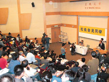 金耀基昨日首次公開與學生討論合併事宜。