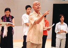 「劇中二十多個不同人物也刻妗e得十分生動,演繹這些角色必定極有助於學生的表演訓練。」這大抵是蔣維國(圖中禿髮者)選演這齣名劇的主要原因吧。此一大型舞台劇將於十一月六日至九日在演藝戲劇院上演,目前正加緊排練中。