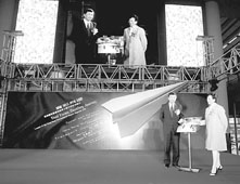 周梁淑怡及彭定中主持電子顯示屏啟用儀式。 (劉國權攝)