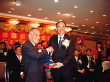圖為鄒副主任頒贈紀念品予全國政協常委莊世平,祝賀莊世平榮獲大紫荊勳章。