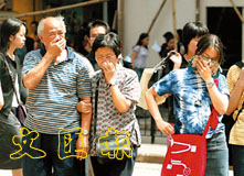 空氣污染雖然輕微改善,但部分地區仍見路人掩鼻而過。 (劉國權攝)