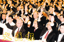港區人代選舉會議第一次全體會議由全國人大常委會秘書長何椿霖主持,董建華為主席團常務主席。 (資料圖片)