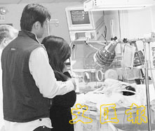 打錯疫苗的嬰兒被送往加護病房治療,聞訊而來的父母看著心愛的寶貝發生如此意外,心如刀絞。(中央社)