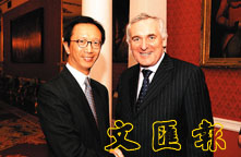 【本報訊】香港首次與其他經濟體系訂立有關中小企業合作的雙邊安排。首次造訪愛爾蘭的財政司司長梁錦松昨日到訪都柏林,獲得愛爾蘭副總理兼商貿及勞工部部長Ms Mary Harney的歡迎。雙方在都柏林交換兩項分別關於資訊和通訊科技及中小企業的合作聯合聲明,旨在透過促進及鼓勵合作發展電子商貿及中小企業,加強愛爾蘭與香港的經貿聯繫。