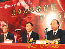 北大黨委書記閔維方(中)和北大校長許智宏(左)親臨本港為北大展覽主持開幕。
