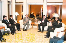 吉林省長洪虎、常務副省長王儒林等拜會中央政府駐港聯絡辦公室主任高祀仁。 (塞北 攝)