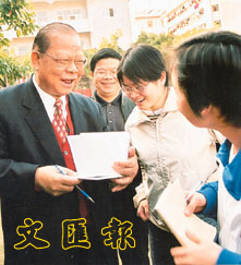 曾憲梓為學生簽名。