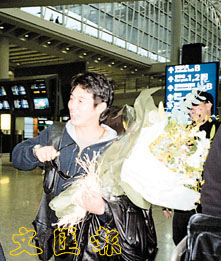 工作人員見到杰仔便上前獻花,原本杰仔也親自拿住,但想到返美與妻女過聖誕,行到一半他便將鮮花掉在行李車上,然後笑說:「唔應該送花畀我,太重啦。」近日周潤發同樣返了香港,他還計劃拍完十七部西片後便拍港產片,問到杰仔何時返港拍戲?他表示未知道。