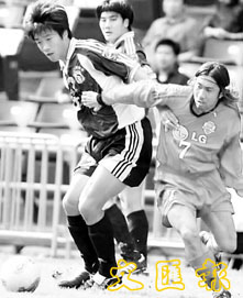 實德王聖(左)與安養前園真聖拚搶。(新華社盧炳輝攝)