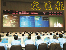 「神舟四號」無人飛船發射現場的指揮控制中心。