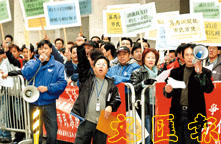 數十名的士及小巴代表昨日就當局落馬洲廿四小時通關措施的事宜在立法會前請願。 (李志樑攝)