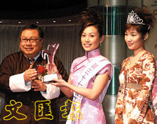 陳永棋會長向獲得今屆工展小姐冠軍的李家儀頒獎。