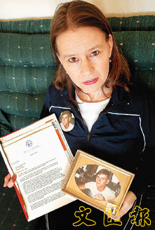 圖為拉羅拿著她弟弟弗寧的照片和來自美國伊利諾伊州州長瑞安解釋特赦死囚的決定的信件。她的弟弟於一九八五年被死囚約翰遜擊斃。 (美聯社)