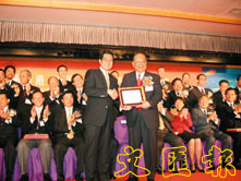曾憲梓向廣東香港商會理事陳柏桓頒發證書。