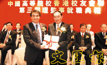 中聯辦王鳳超副主任為高校聯理事會新會長郭明華頒發證書。