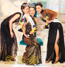 【本報訊】「二○○三年度國際華裔小姐競選」昨晚在無線電視城舉行,冠軍爆冷由五號的吉隆坡小姐陳泳錦奪得。賽前被喻為三甲熱門人選的二十號香港小姐林敏俐也不負眾望奪得亞軍,季軍是十號多倫多小姐吳丹,至於二號曼谷的陳美鳳大熱倒灶只得「柔美肌膚獎」及打入最後五強,另外「友誼小姐」及「活力美雪小姐」分別由九號阿姆斯特丹的龔弦君及十七號馬尼拉的李景熙奪得。