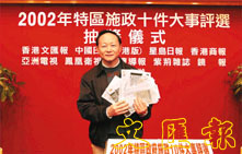 【本報訊】(記者 任智鵬)九龍總商會擔任《二○○二特區施政十件大事》鑽石贊助機構,該會理事長黃熾雄表示,對今次評選市民的踴躍參與覺得欣喜,對比起參與人數比較少的前幾年選舉,他認為這次大規模的評選能令港人更加關注涉及每個市民的特區政府施政情況,亦能令特區政府更加清楚市民對於自己所制定及施行的政策是否支持,從而為改善今後施政提供參考。
