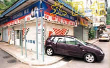 【本報訊】大坑昨午發生驚險車禍,一名新牌仔駕駛著新私家車在蓮花宮西街倒後掉頭時,疑將油門當腳掣,失控剷上行人路撞到一名男子,並將其右手臂夾在一店舖的鐵閘,事主險變「人肉三明治」動彈不得,數名途人見狀立即抬起私家車救出事主,經送院治理後已無大礙,肇事私家車則被拖走檢驗。