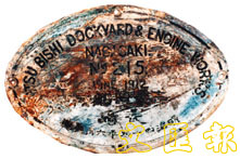 日本長崎造船所製造的永豐艦出廠標牌,上面刻有出廠日期為1912年6月。