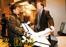 美國太空總署人員向新華社記者解答「哥倫比亞」號情況。 (新華社)