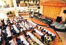 裕緯經過近十年的發展,已成為東莞市其中一家大型地產公司,僱用員工逾千人(圖中是該公司年終的表彰大會)。