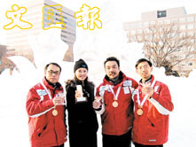 香港冰雕隊以「守護金剛」勇奪「札幌雪節」國際冰雕比賽冠軍,應屆港姐林敏俐親臨祝賀。