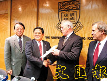 檢討小組召集人賴能教授(右二)提交報告書予港大校董會主席馮國經(左二)及港大校長徐立之教授。