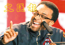 柏林記者會上,黑人導演史派李倡和平。