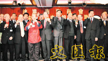 賓主於南海商會春茗晚宴上向來賓祝酒,舉杯共祝香港明天更美好!(鄭群攝)