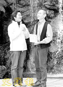 陳文德先生(捐髓者)(右)和陳曼麗女士(接受骨髓移植康復者)見面,呼籲社會捐款。 (劉國攝)
