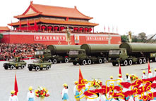 戰略導彈部隊在建國五十周年閱兵式上通過天安門。 (資料圖片)