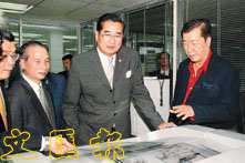 對泰國亞洲日報「愛克發」自動彩色沖印機運作,訕警上將讚不絕口。泰華報人公益基金會主席陳世賢、亞洲日報董事主席李光隆和董事長李石成陪同訕警上將參觀。