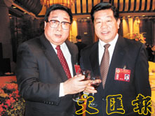 賈慶林和高祀仁在招待會上。 (本報北京傳真)