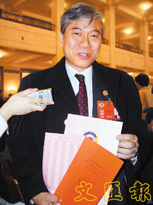 劉迺強拿著自己的選票接受記者採訪。 (本報北京傳真)