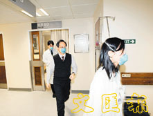部分疑染肺炎的病人轉往威院的8D病房檢查,而醫護人員均戴上口罩。