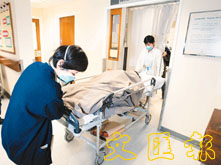 感染肺炎的病人被推進特殊病房。 (劉國權攝)