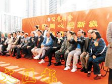 范徐麗泰和譚耀宗出席公屋聯會的步行活動。范太對鏡頭十分敏感,揮手致意,而譚耀宗則不知為何做出推手的動作。