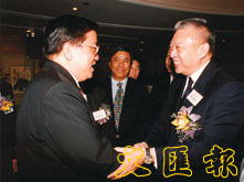 黃光漢與特首董建華於福建社團聯會的宴會上。