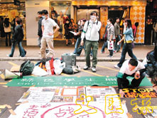 綠色學生聯會昨日在旺角街頭集會,展示多張伊拉克平民無辜受害的照片,吸引市民圍觀。