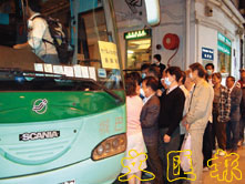 多間直通巴士公司聯合開辦荃灣至皇崗二十四小時跨境快線,昨日更讓市民免費試搭。 (甄健輝 攝)