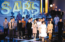 無線電視舉辦「同心共勉香港心 」節目,為醫管局籌款以對抗非典型肺炎。 (李志樑 攝)