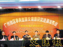 廣州地區非典型肺炎病原研究進展發源佈會。