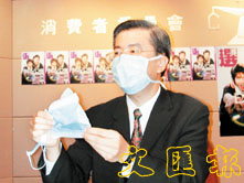 【本報訊】(記者 盧燕娥)充斥市面的口罩良莠不齊,市民如錯選,不但浪費金錢,更未能防禦非典型肺炎,如掉以輕心,恐怕反會遭受感染;消費者委員會忠告市民,應該選用三層的外科手術專用口罩、N95口罩。