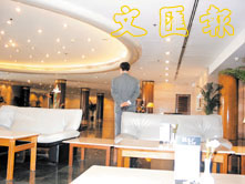 上海世博會議大酒店戒備森嚴,持對講機的保衛人員在大堂及入口巡視。 (本報上海傳真)